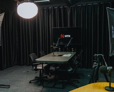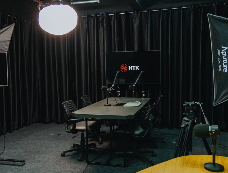 Com um ambiente industrial amplo, o Estúdio HTK transforma suas ideias em realidade, oferecendo mesa para podcast, cenários chroma e suporte fotográfico.