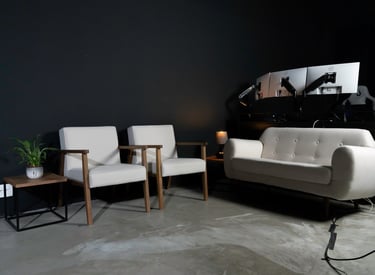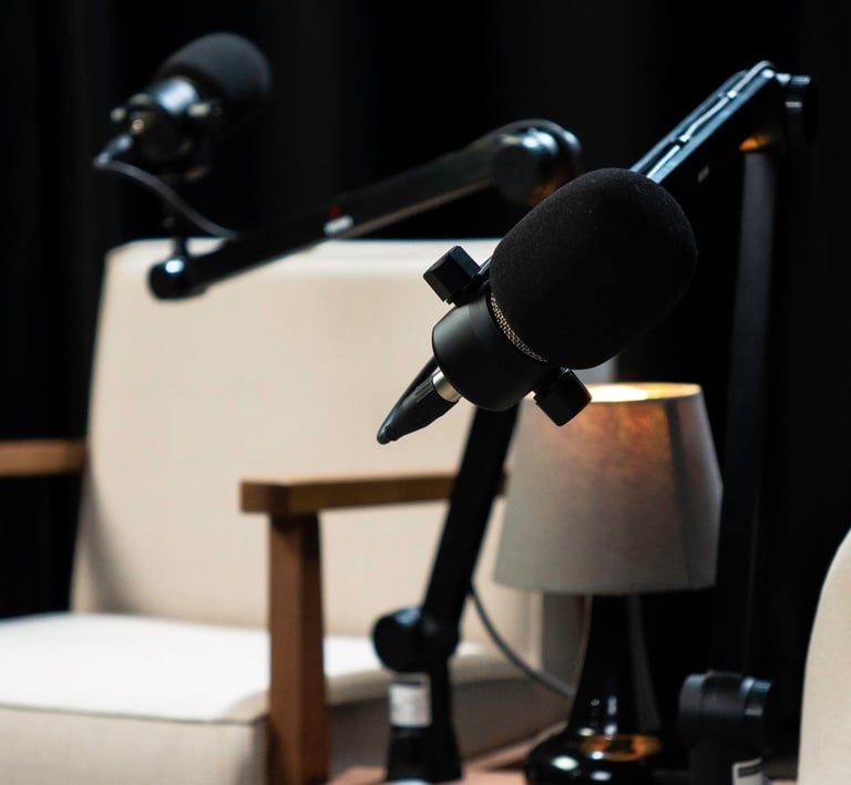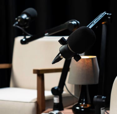 Espaço ideal para gravações de áudio com qualidade profissional e conforto para os participantes.